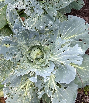 ちゃんと食べられるキャベツも取れたんだけど、日陰になってて生育の悪かったキャベツは、今散々な状態。