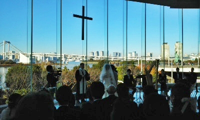 そのレインボーブリッジを借景にしたホテルでの結婚式に参列。