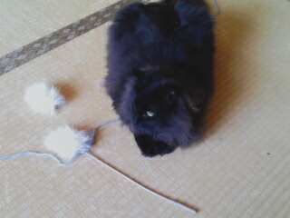 お構いなしにおもちゃのねずみで遊ぶやつ、