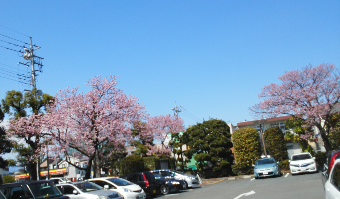 駐車場を囲むように桜が咲いていた。