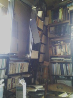 地震の最中に、書類ケースの引き出しが全部開き、ピアノの上においてあるCDプレーヤーが落ちそうになったので、慌てて押さえ。