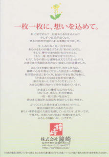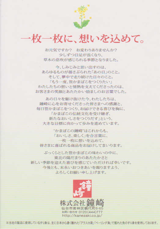 笹かまぼこの包みに入っていた、葉書半分ほどの小さなメッセージカード。↓(クリックで拡大します)