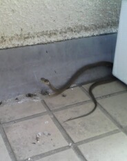 50cm超くらいの、蛇にしては小型なのだろうが、箒を向けると鎌首を上げて攻撃態勢を取る。