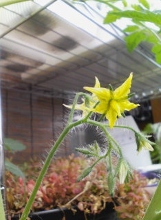 先日苗を買って来たミニトマトに花が付いた。