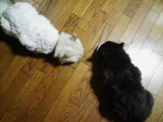 長毛のお二人さん、暑いだろうなと思って、サマーカット仕様にしてみたのだが。