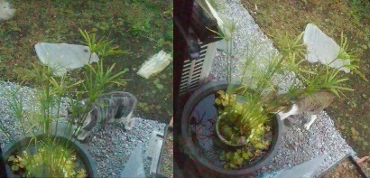 近隣の猫の通り道となっている我が家の庭で、そこが格好の猫の水飲み場となっていることに最近気が付いた。