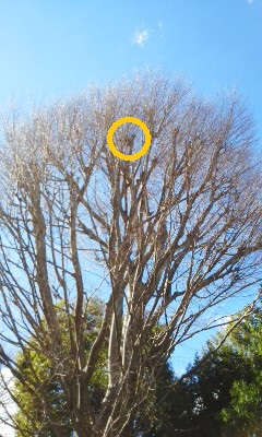 すっかり葉を落としているので、カラスの巣が丸見え。