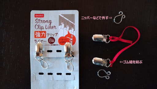 カーテンクリップを100均で見つけ、いけるんではないかと思いまして。