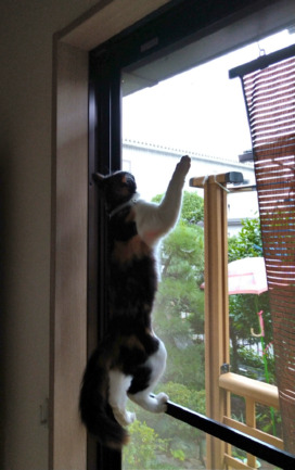 網戸の網が少々古くて、目が歪になったところもあるから、破くなよ~。