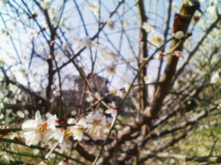 ぼけぼけですが、近所の寒梅。