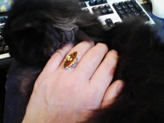 これが、その指輪(撮影協力:くろ・・・毛皮がバックの方が映えるでしょ?)