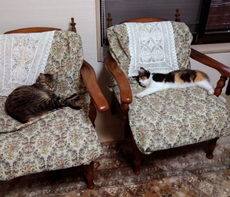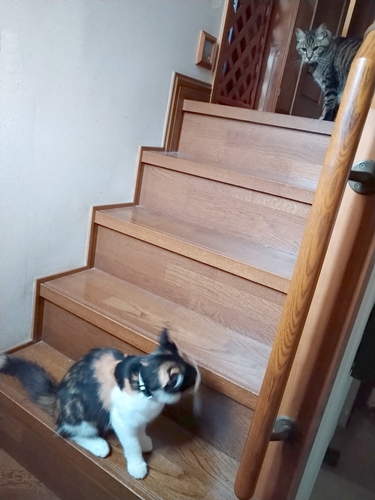 先住猫の千代と、よくかくれんぼや追っかけっこをして遊んでる。