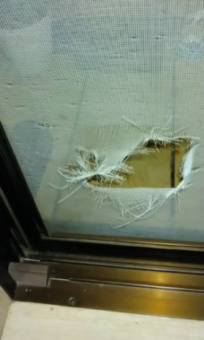 昨夜、そ奴が喧嘩を売る時に体当たりして、住居侵入した模様。